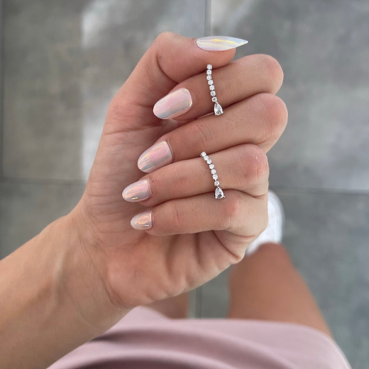 טבעת פתוחה 2 שורות שפיצים משובץ זהב