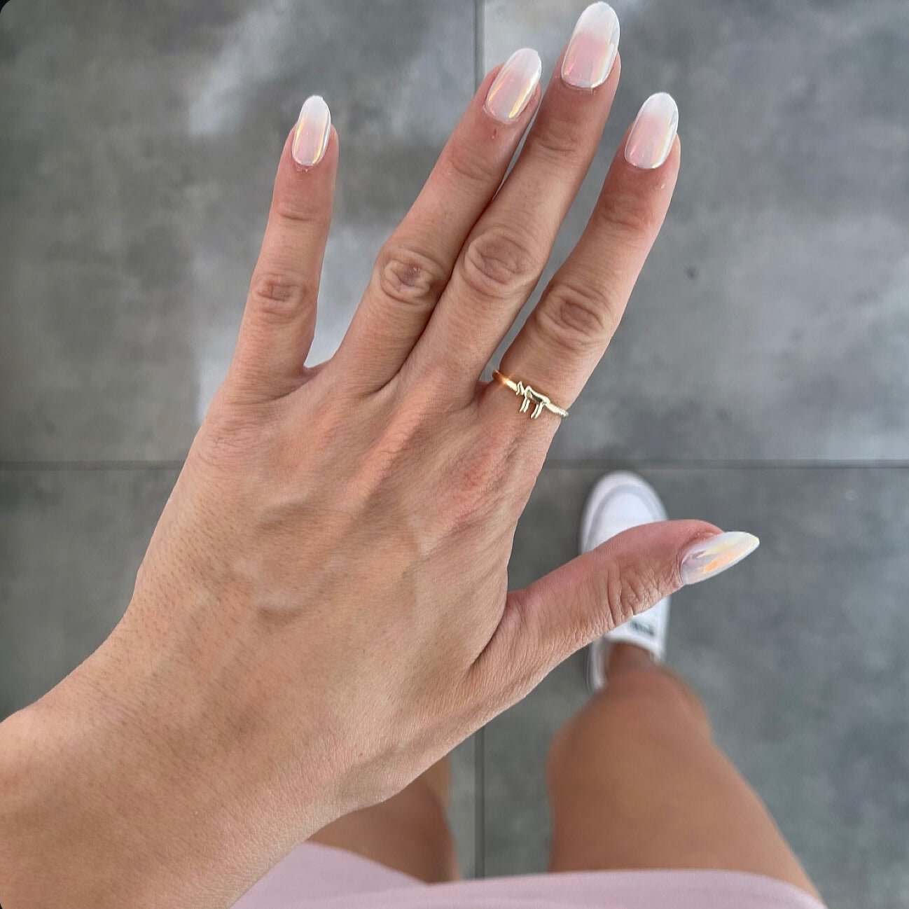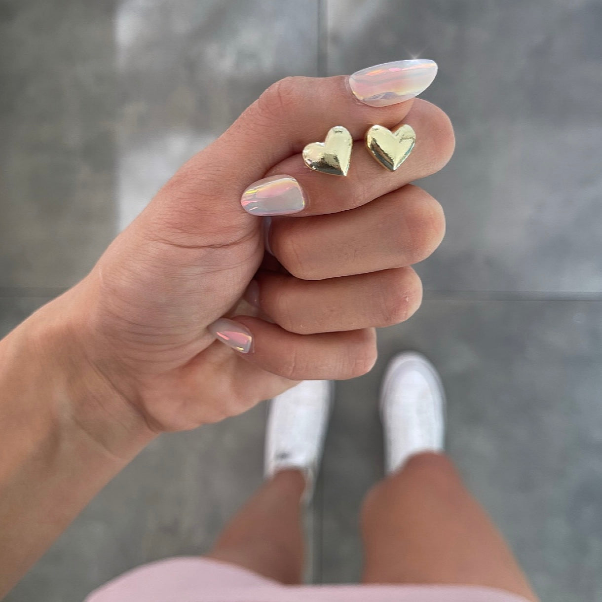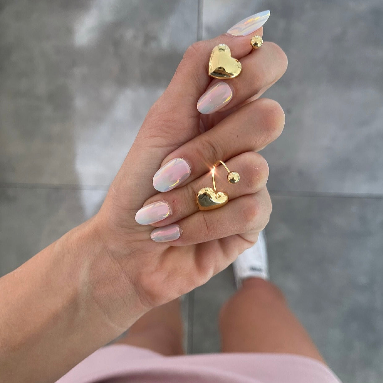 טבעת חישוק לב שמן קטן קטן משובץ זהב