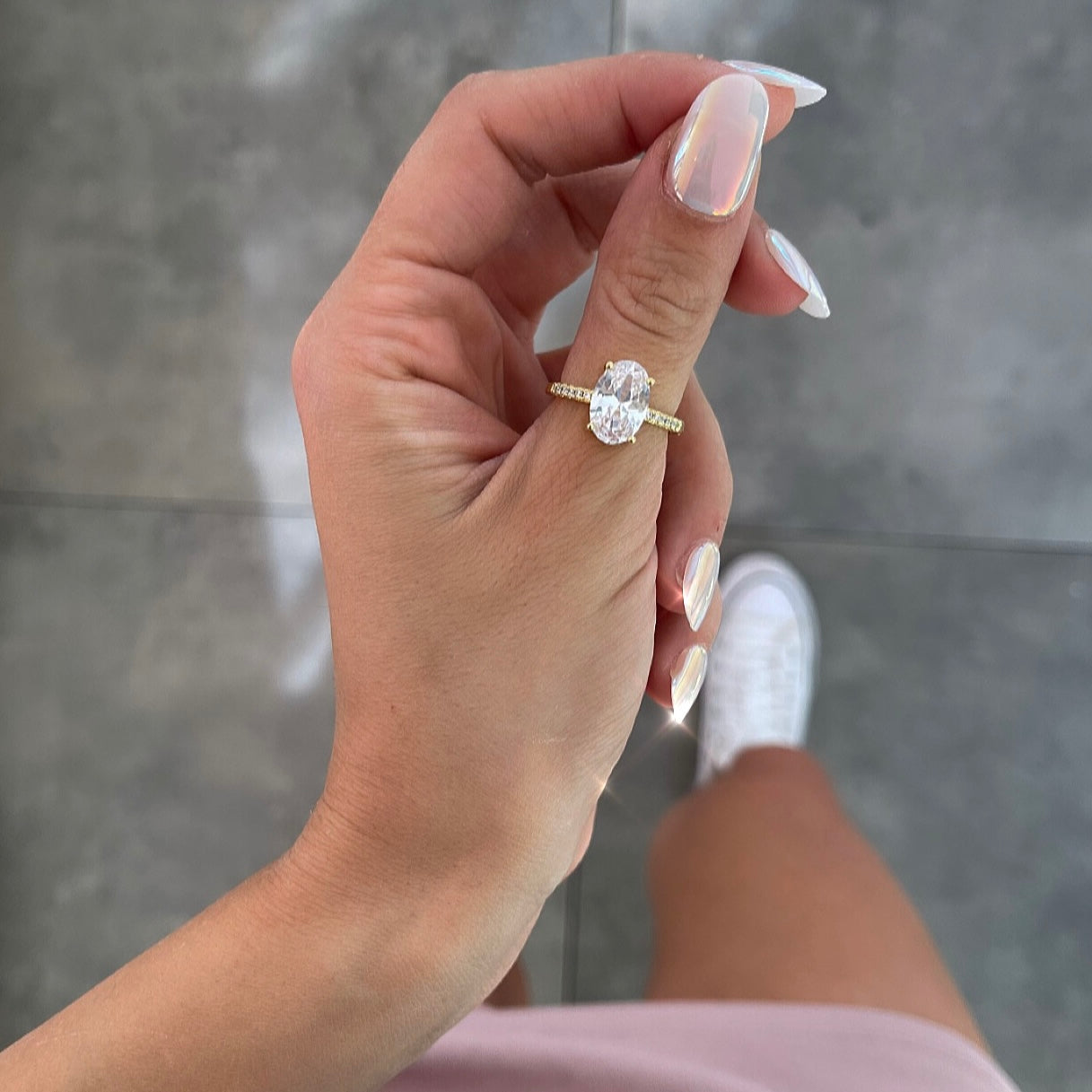 טבעת חישוק זירקון מלבן קטן קטן זהב