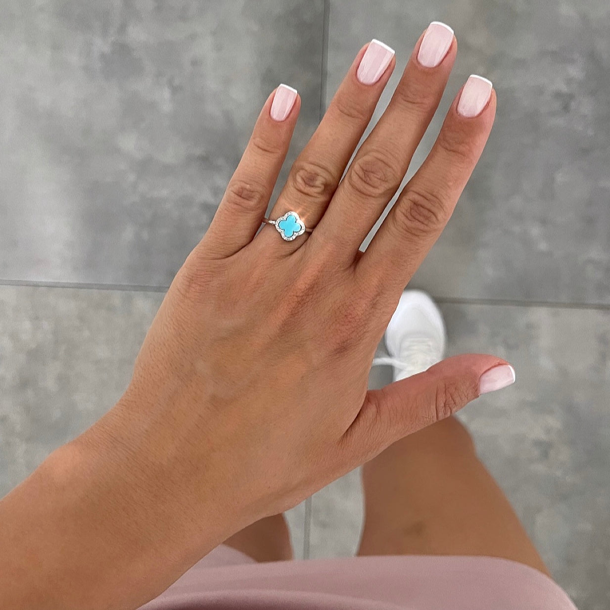 טבעת פתוחה טול טולי תכלת כסף