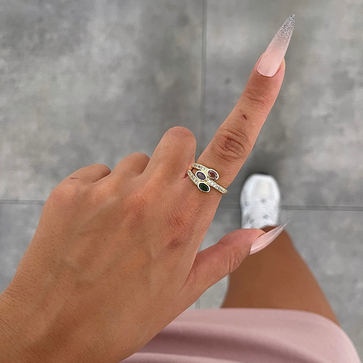טבעת טבעת 3 שורות טיפות צבעוניות עליו זהב