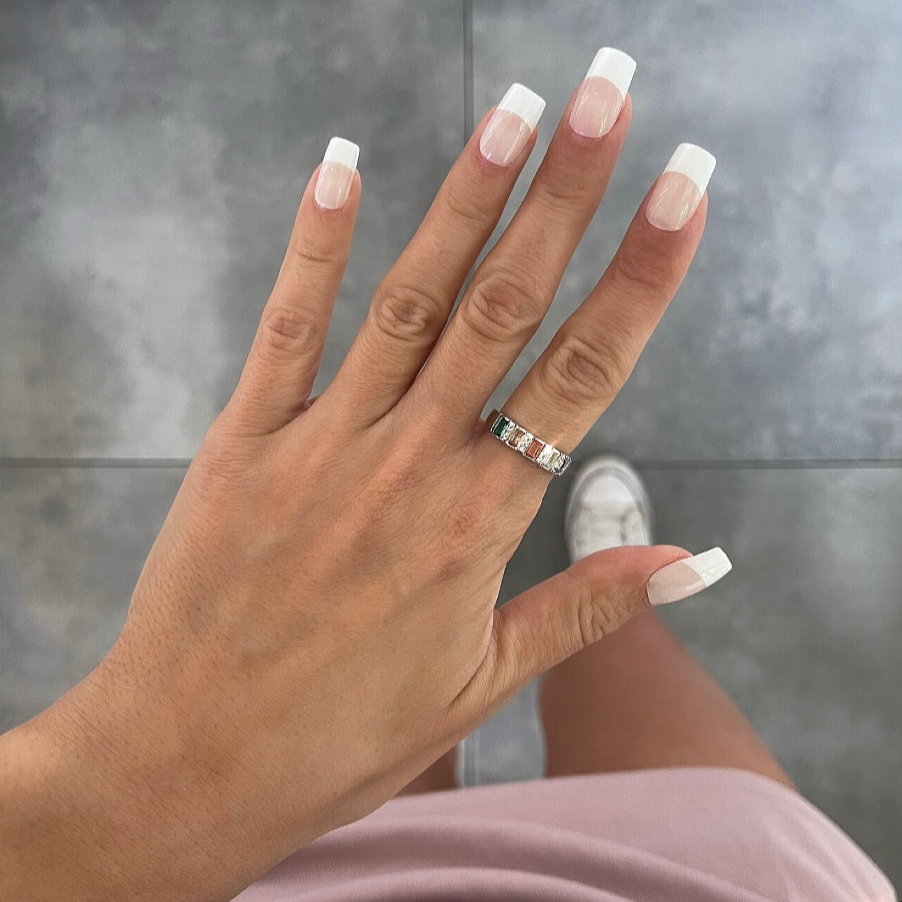 טבעת חישוק עבה עם זירקונים מלבניים צבעוני כסף