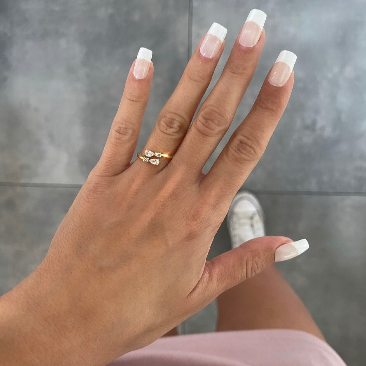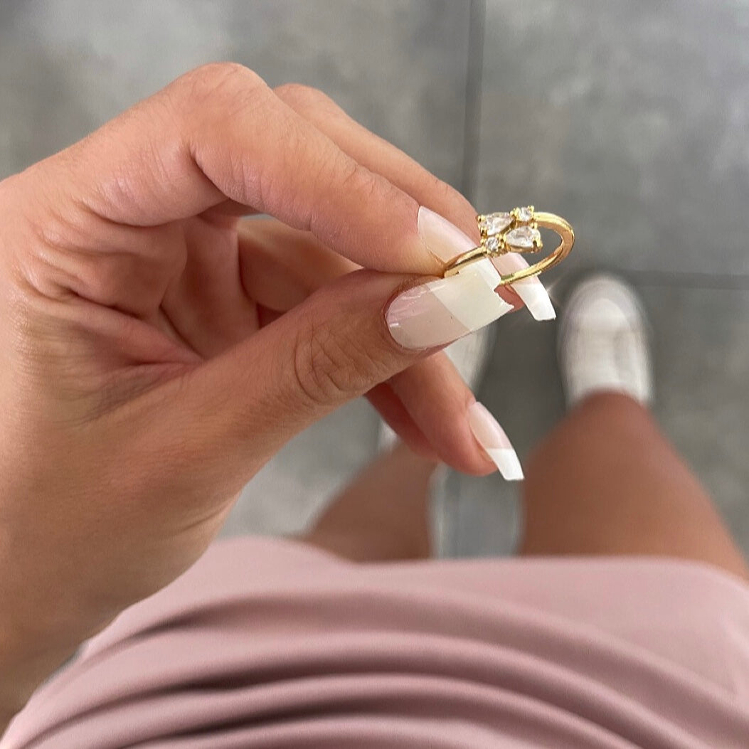 טבעפ תוחה 2 טיפות זירקון אחד מול השני זהב