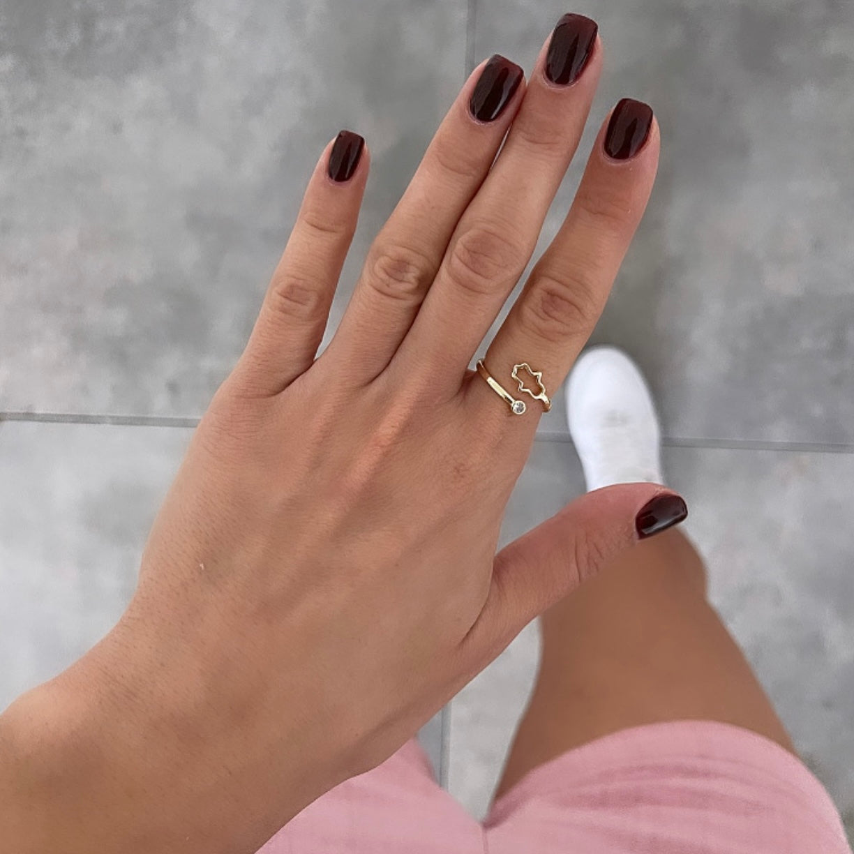 טבעת פתוחה חמסה חלולה וזירקון זהב
