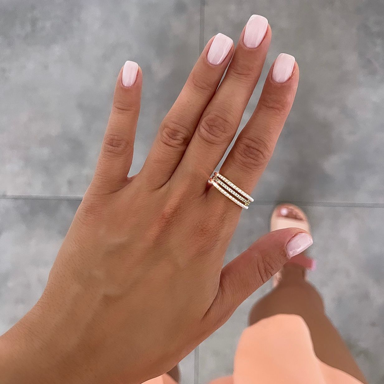 טבעת פתוחה פסים פסים משולבת זירקונים זהב