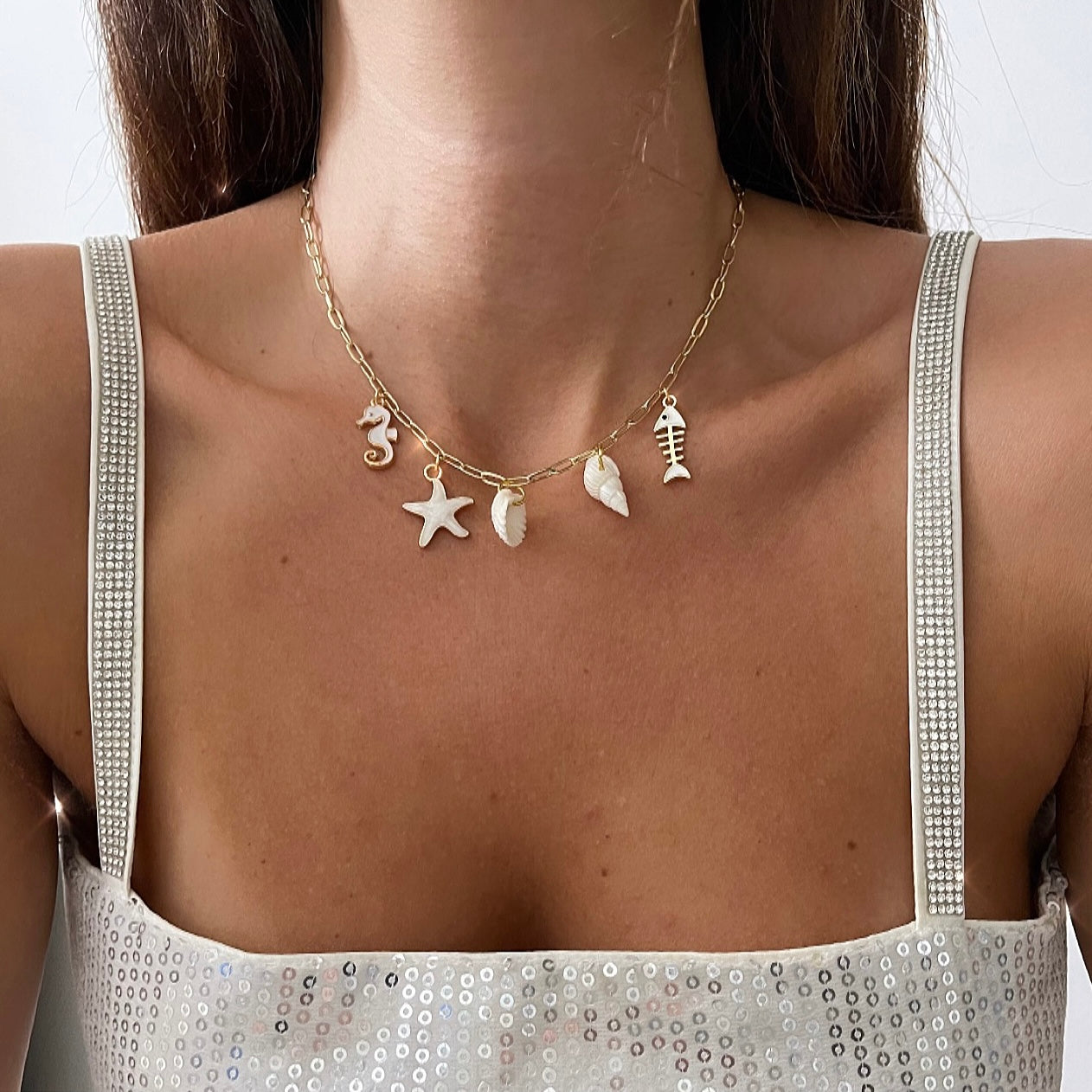 שרשרת ליאן אלמנטים ים שנהב לבן צדפה סוס ים כוכב ים שנהב זהב
