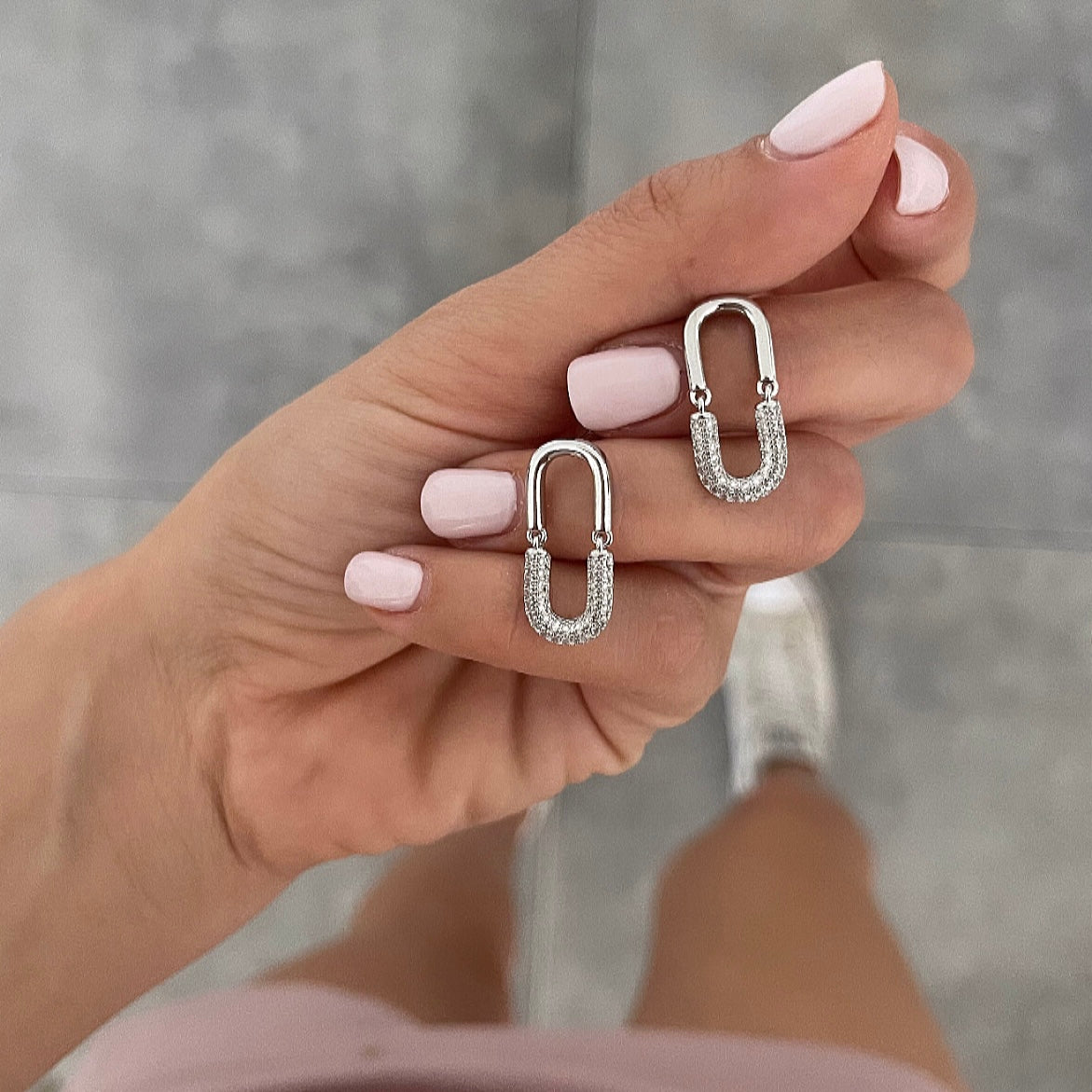 עגילים אליפסה מתקפלת חצי משובץ כסף