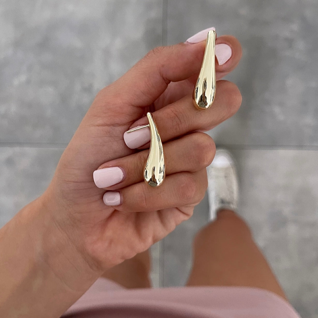 עגילים טיפה חלקה ארוכה לא כפולה זהב
