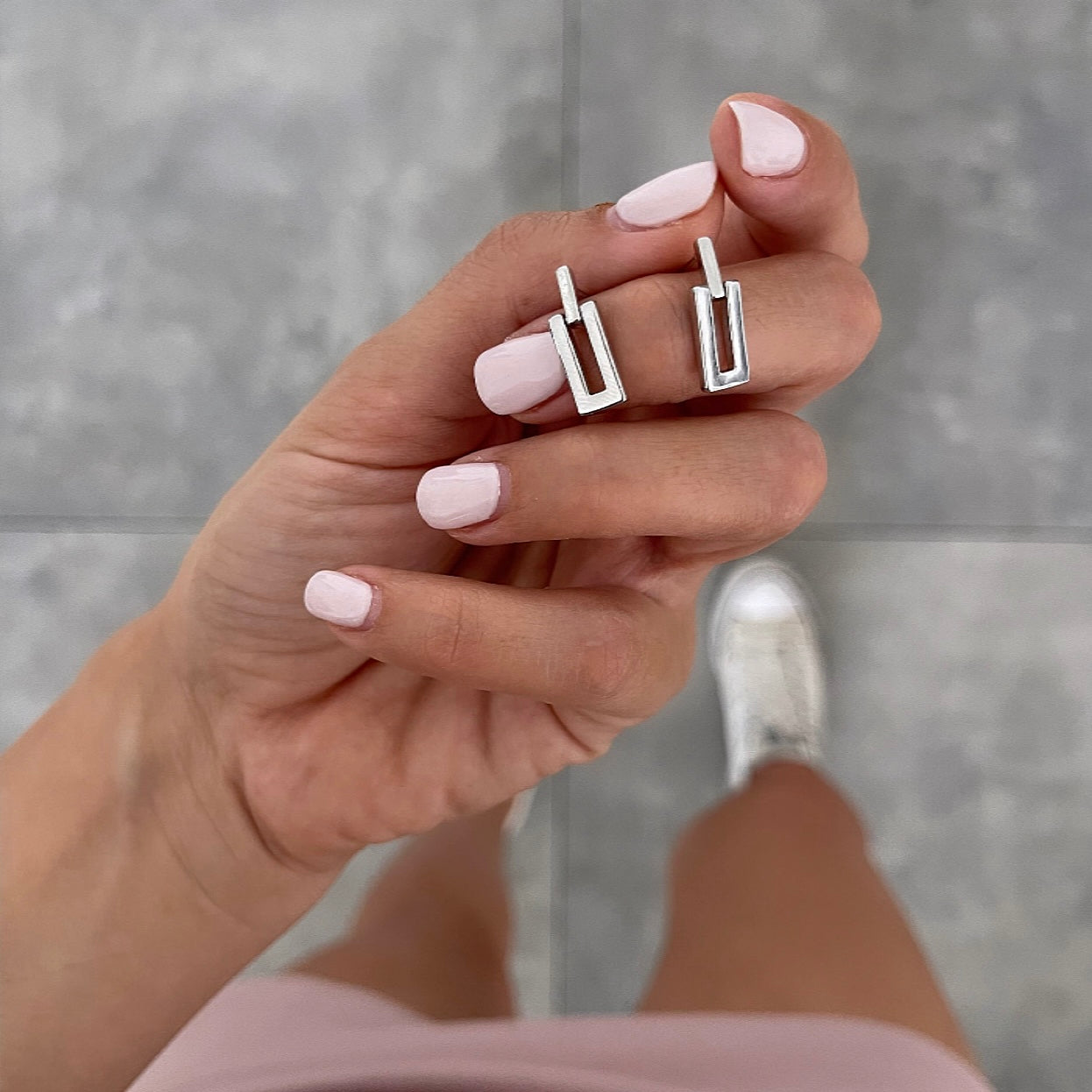 עגילים 2 מלבנים מחוברים לאורך כסף