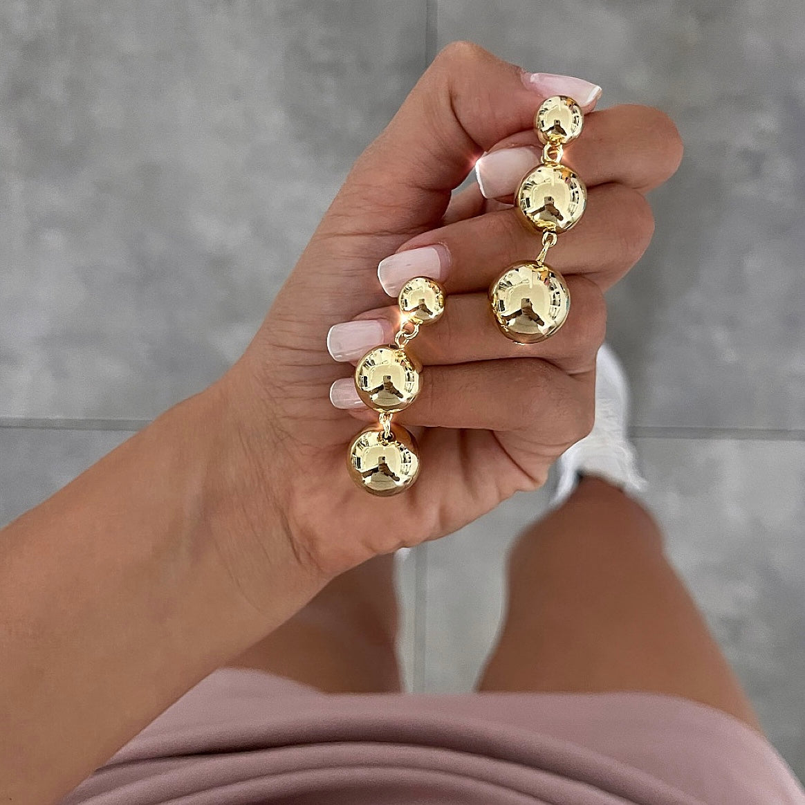 עגילים 3 כדורים חלקים לאורך זהב j
