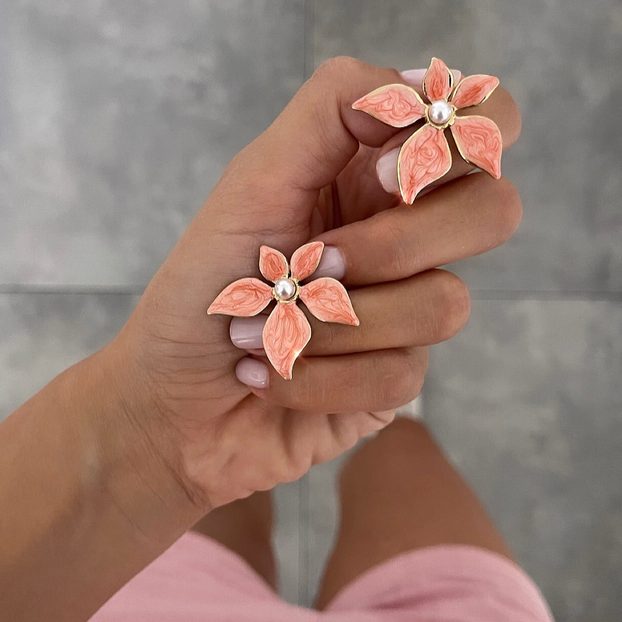 עגילים פרח מתפרע קרמיקה ורוד עתיק זהב