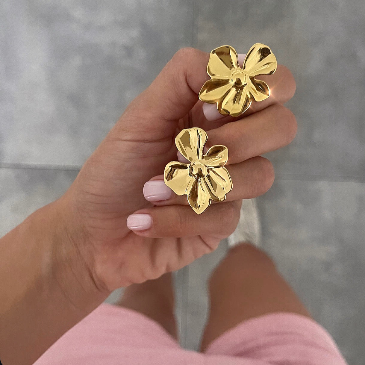 עגילים פרח חלק זהב