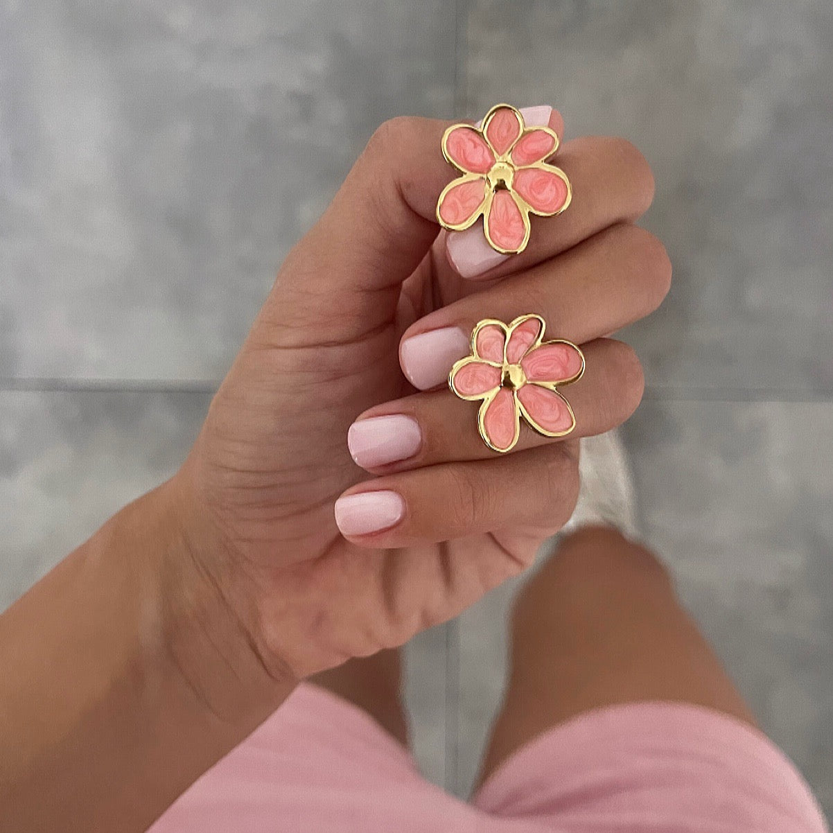 עגילים קרמיקה מעוגל ורוד עתיק זהב