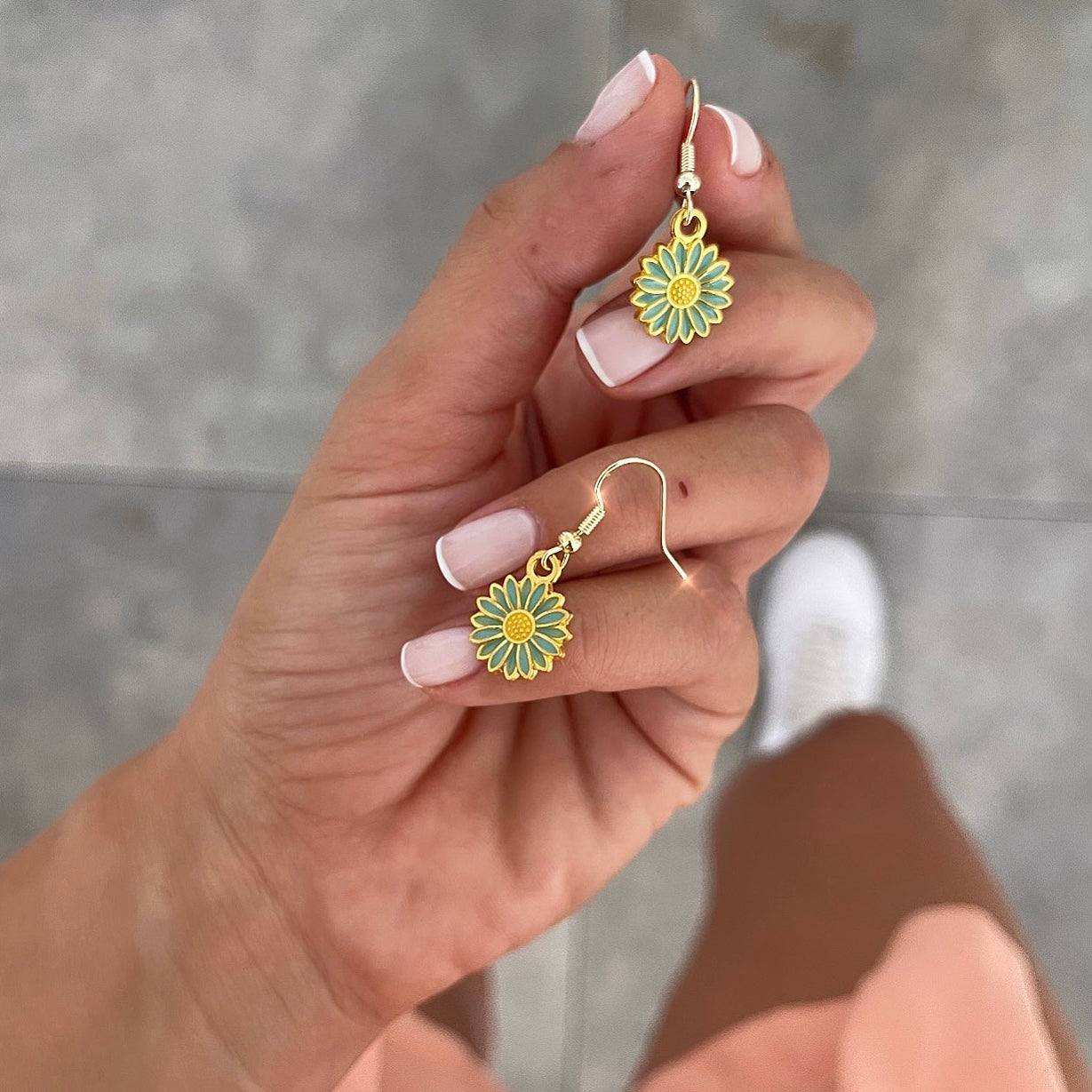 עגילים פרח סביון ירוק צהוב תלוי זהב