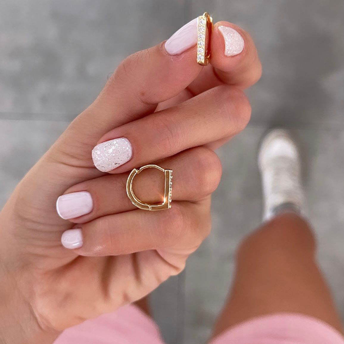 עגילים דיל טניס יו חצי משובץ זהב