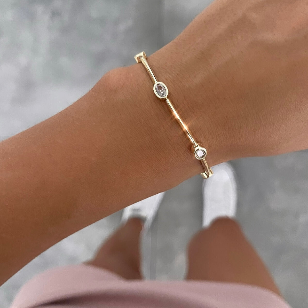 צמיד צינור חלק רווח זירקונים אובלים מסגרת זהב
