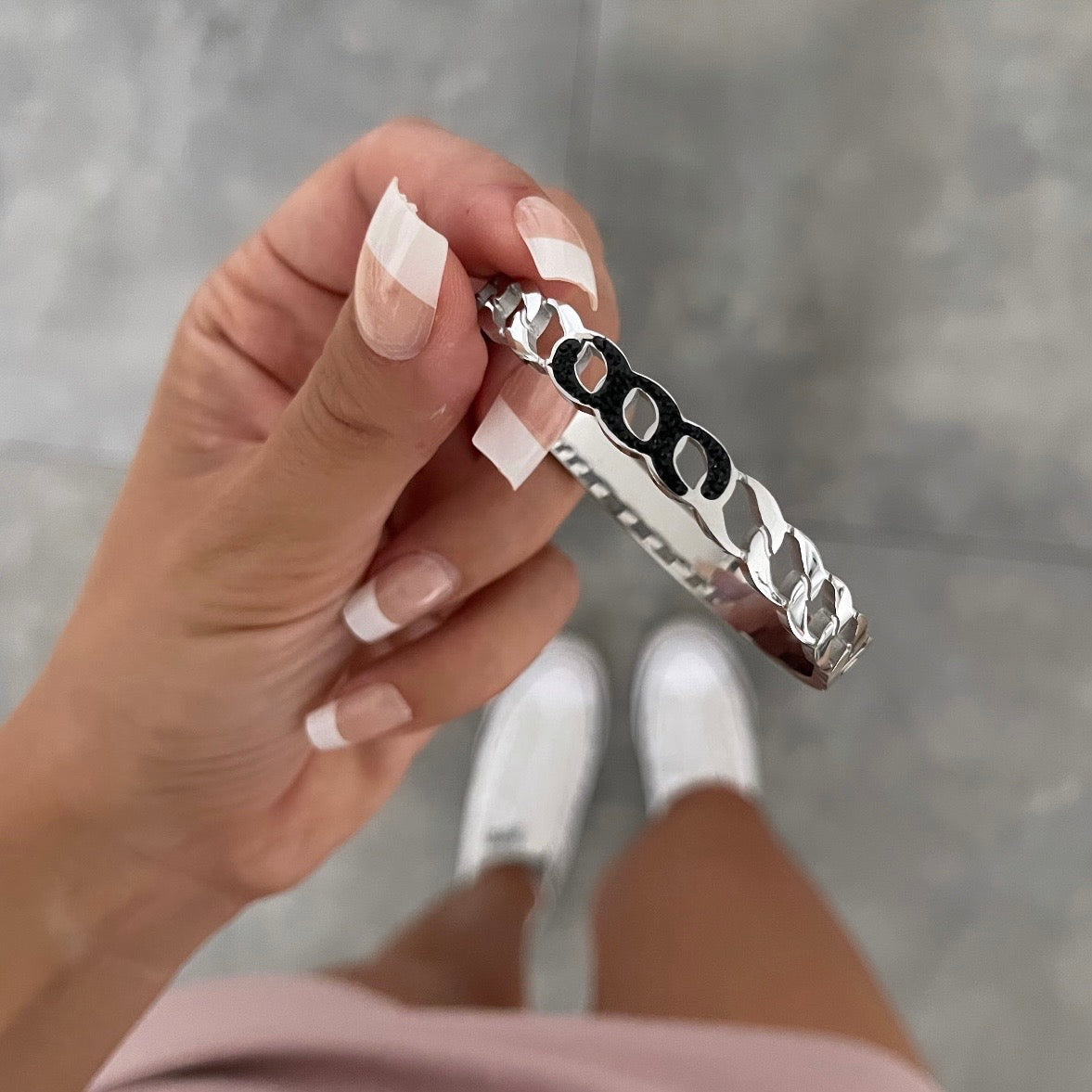 צמיד קשיח גורמט עם השחרה למעלה כסף