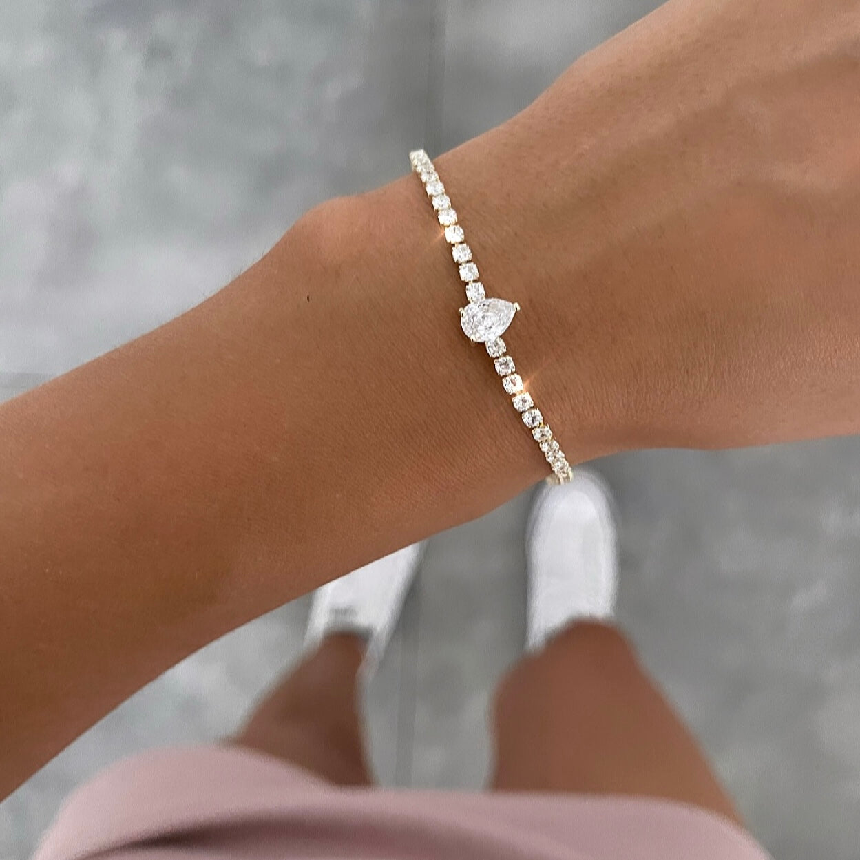 צמיד טניס טיפה ללא מסגרת באמצע זהב