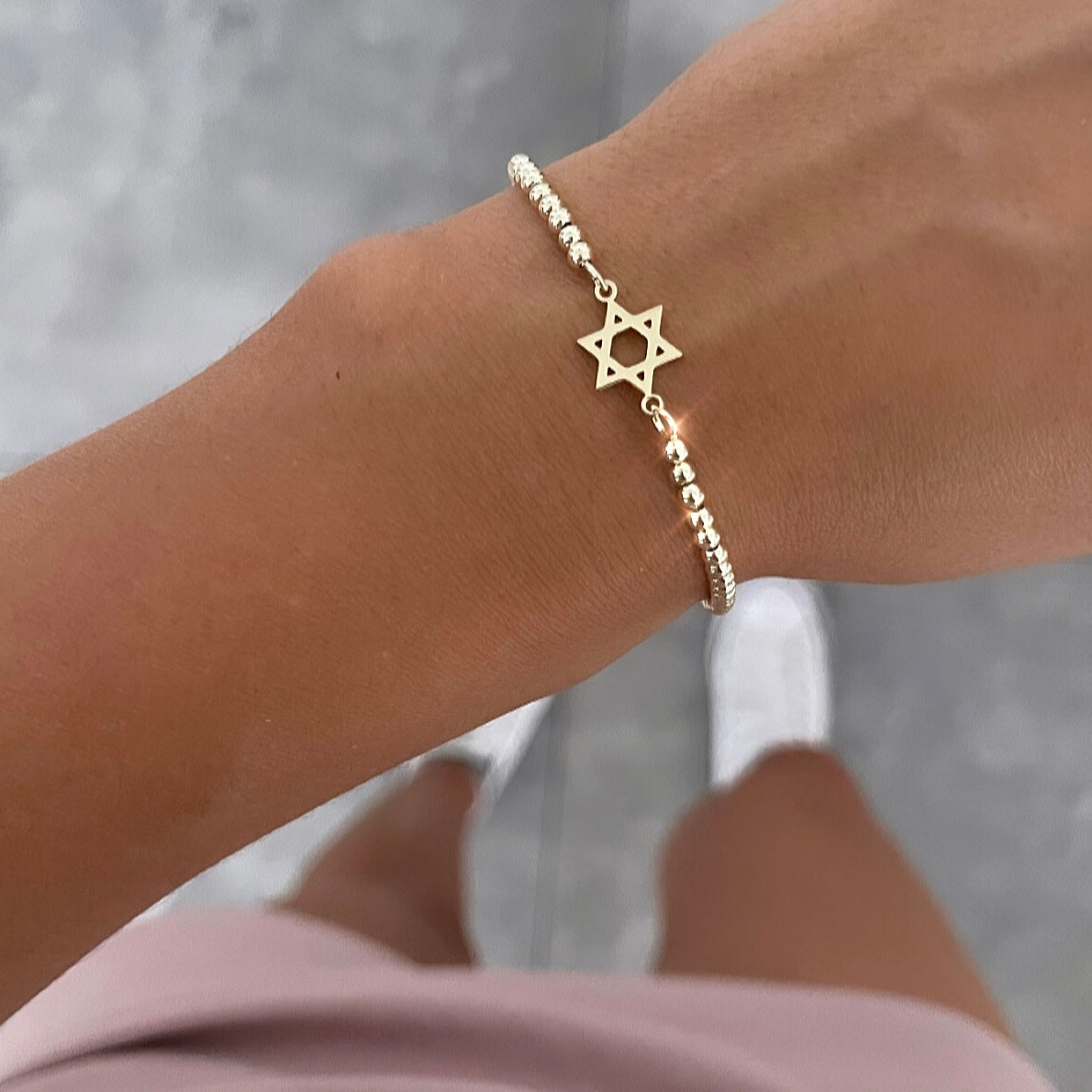 צמיד כדורים מגן דוד באמצע חלק זהב