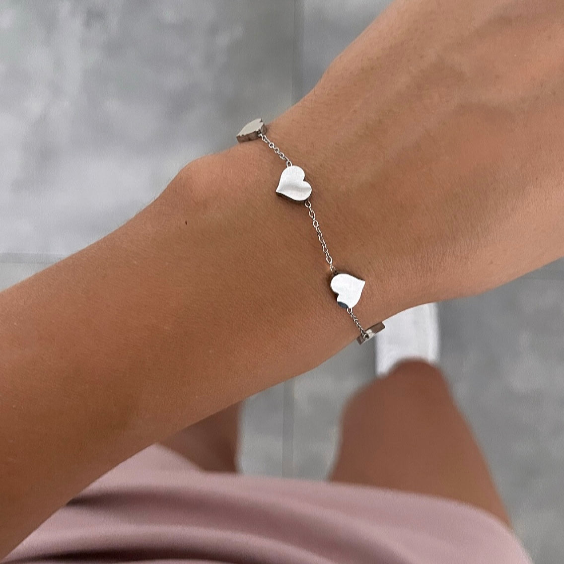 צמיד דק דוגמאת לב /דק /לב. כסף