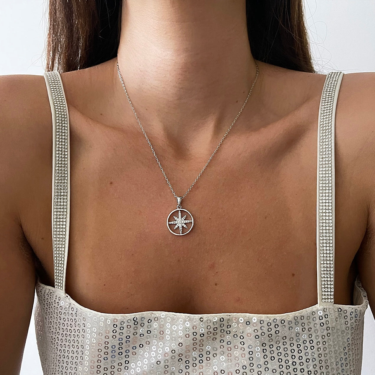 שרשרת עיגול חלול ובתוכו כוכב אושר כסף