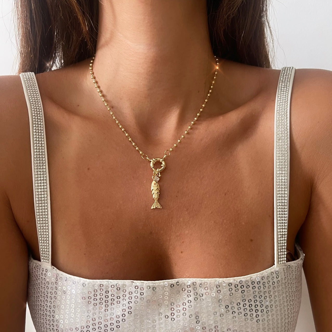 שרשרת דיסקית דק אן זירקון תליון שקוף דג זהב J