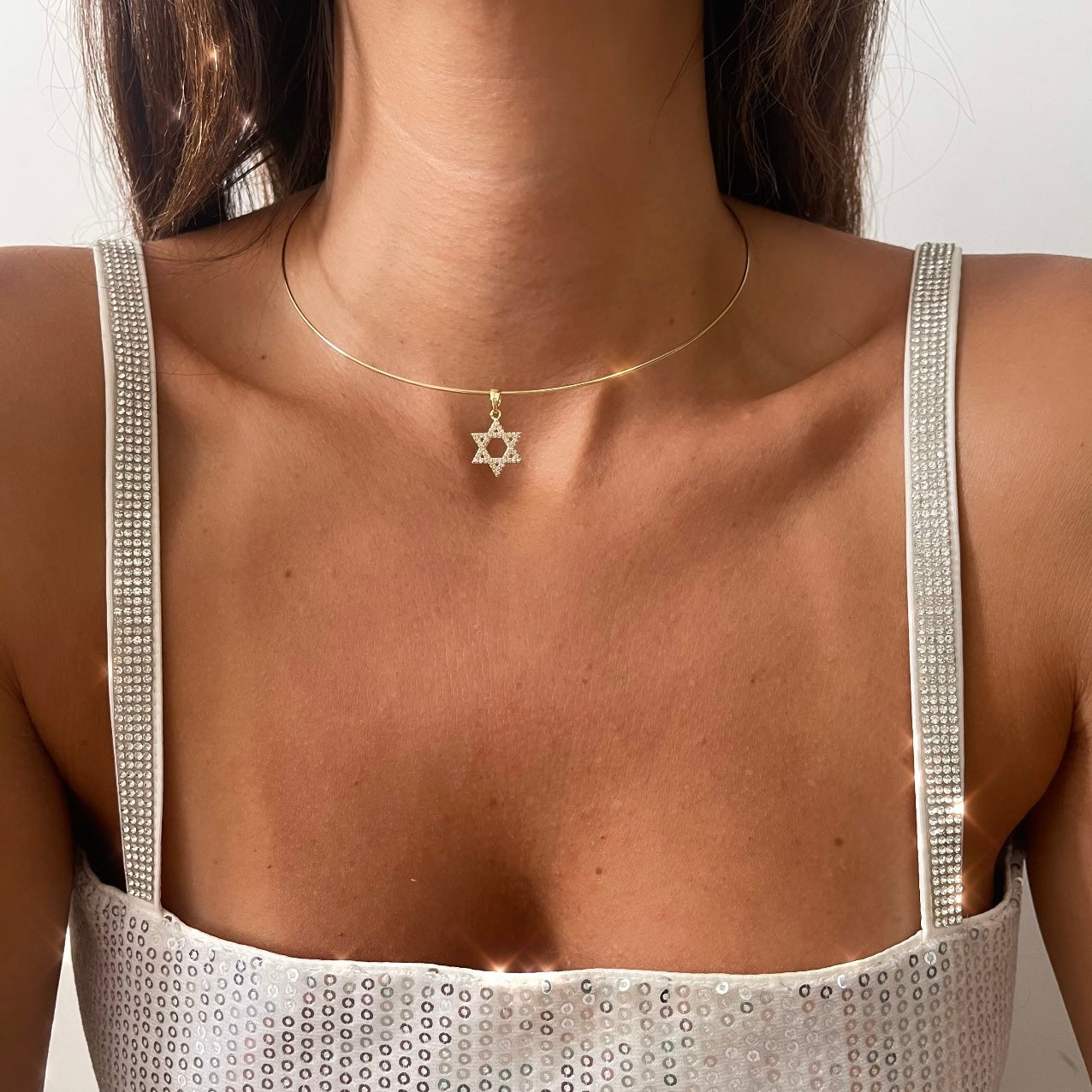 שרשרת קשיח חוט תליון מגן דוד משובץ זהב