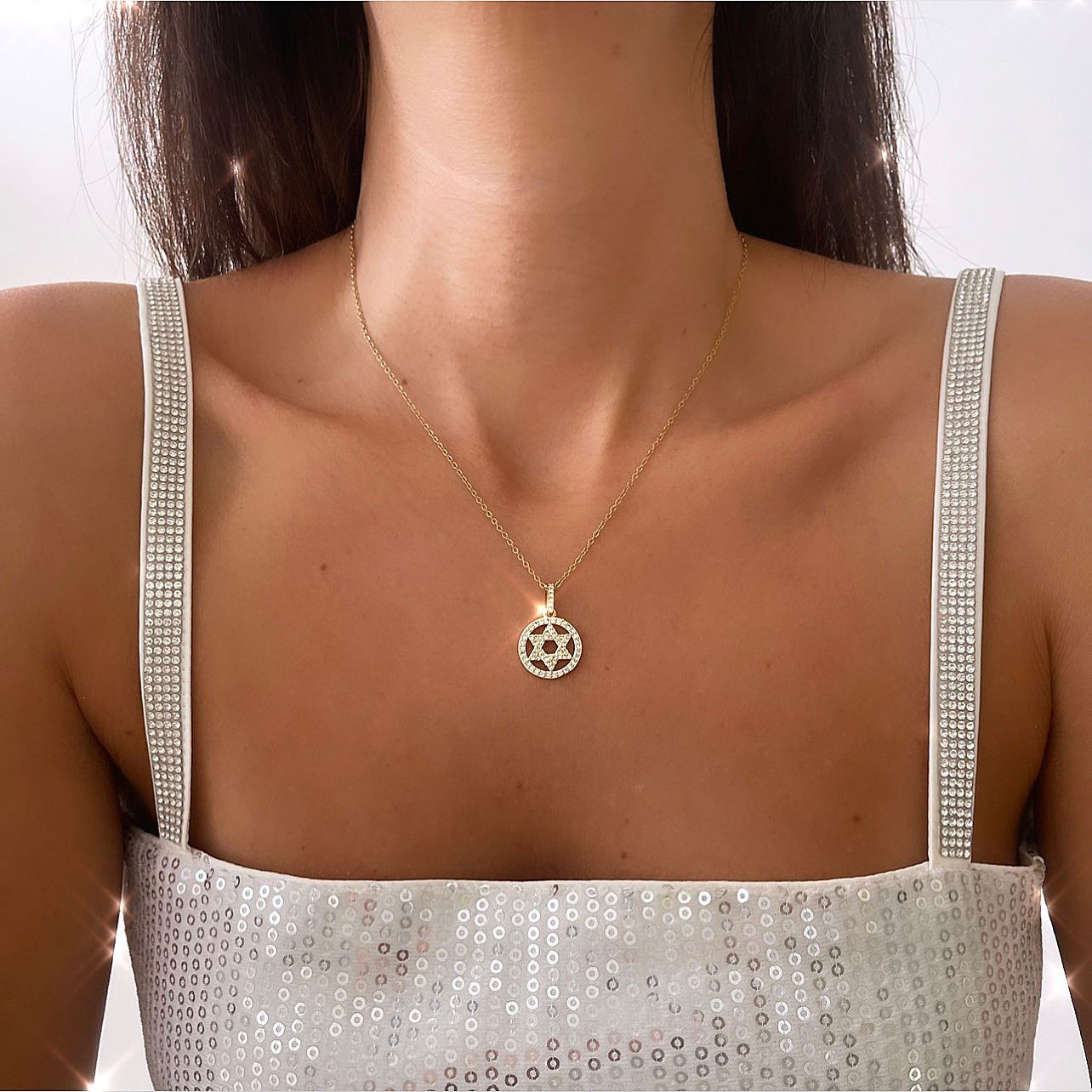 שרשרת עיגול חלול בתוכו מגן דוד משובץ זהב