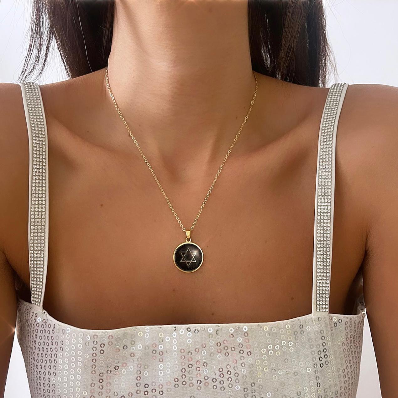 שרשרת עיגול שחור שטוח מגן דוד זהב
