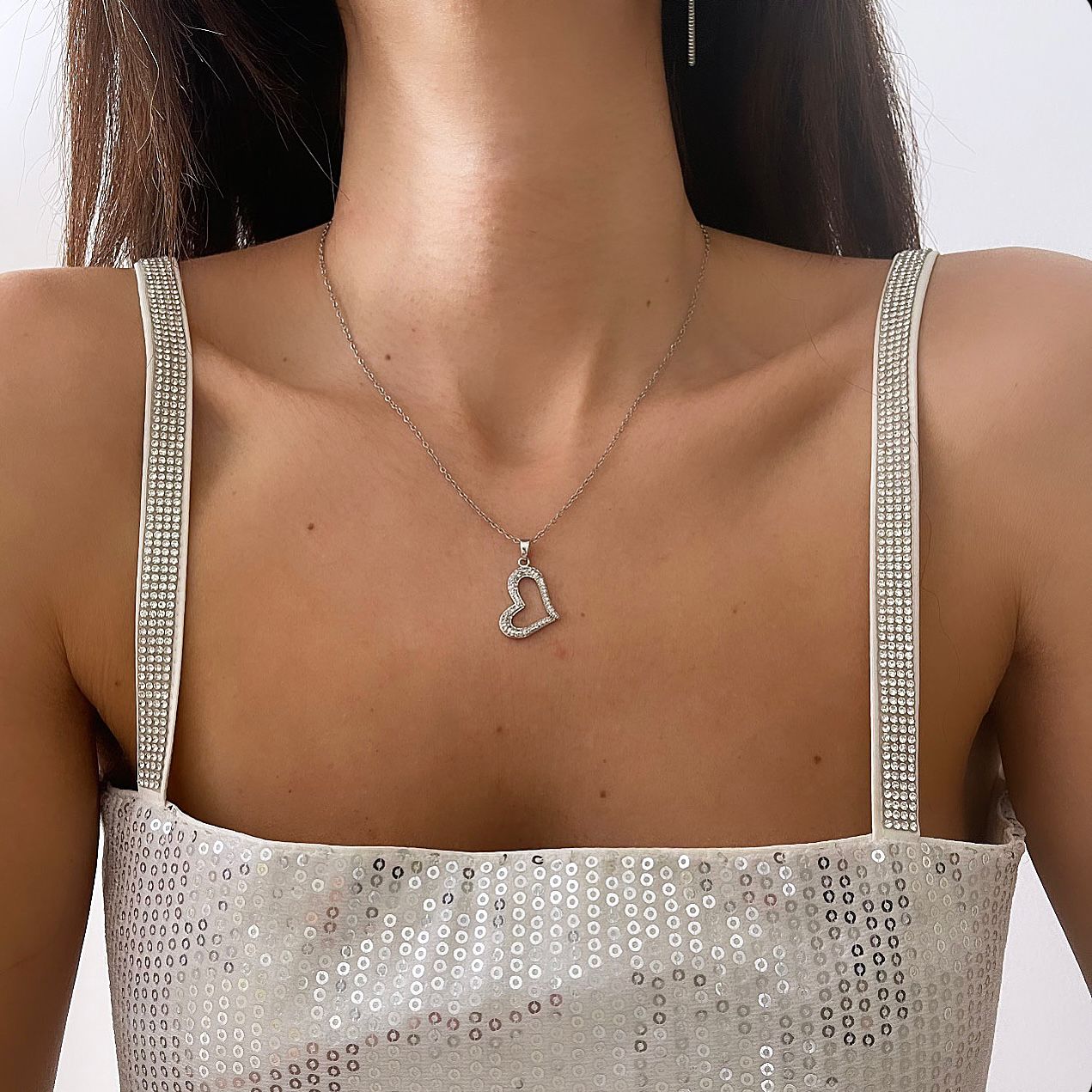 שרשרת לב חלול אלכסוני כסף