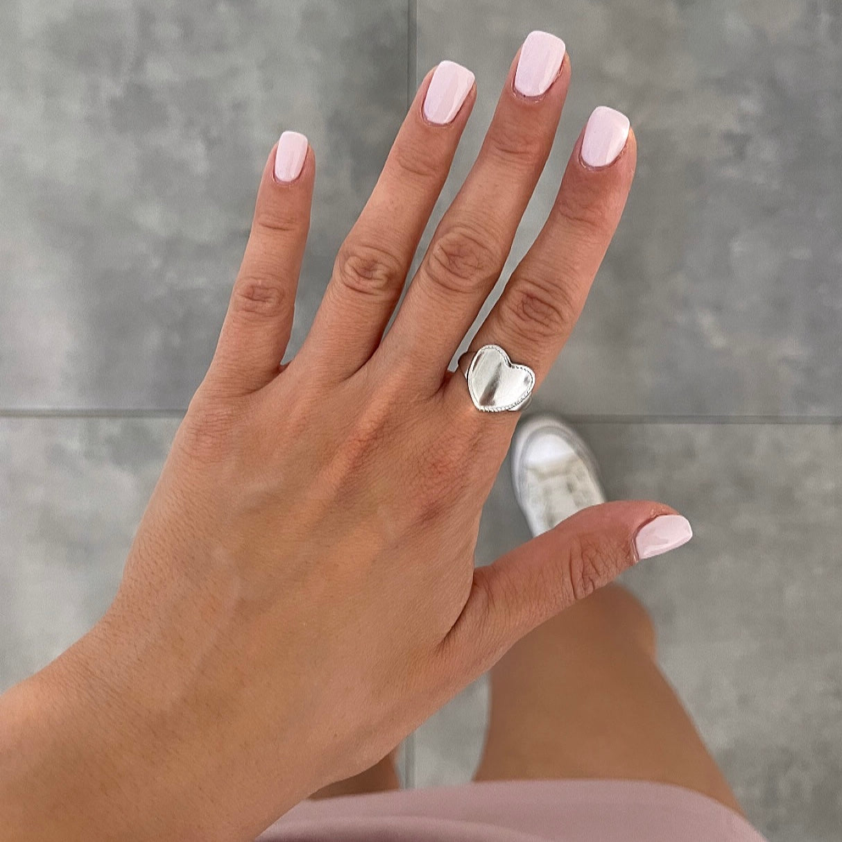טבעת לב שטוח חלק כסף