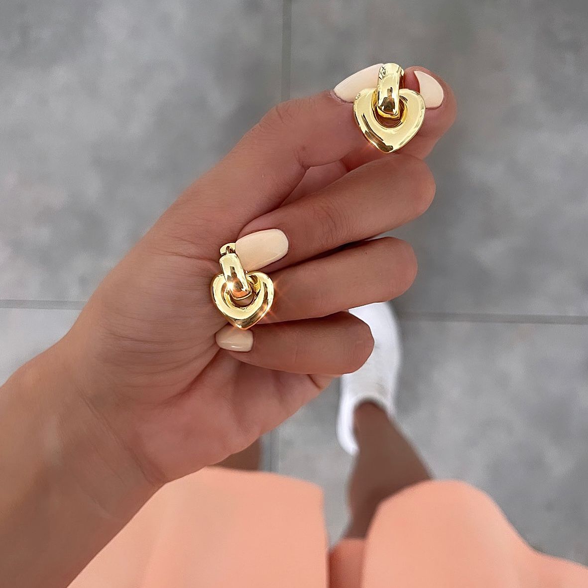 עגילים די לב צינור חלול תלוי על מלבן זהב