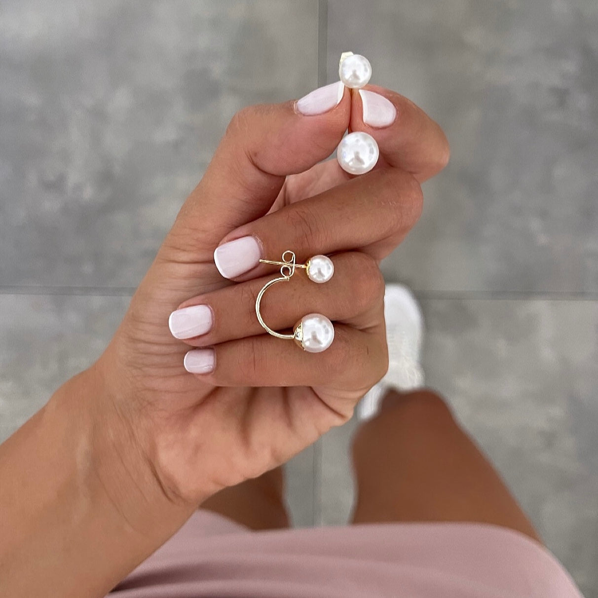 עגילים חצי חישוק דק דק פנינה למעלה ולמטה זהב