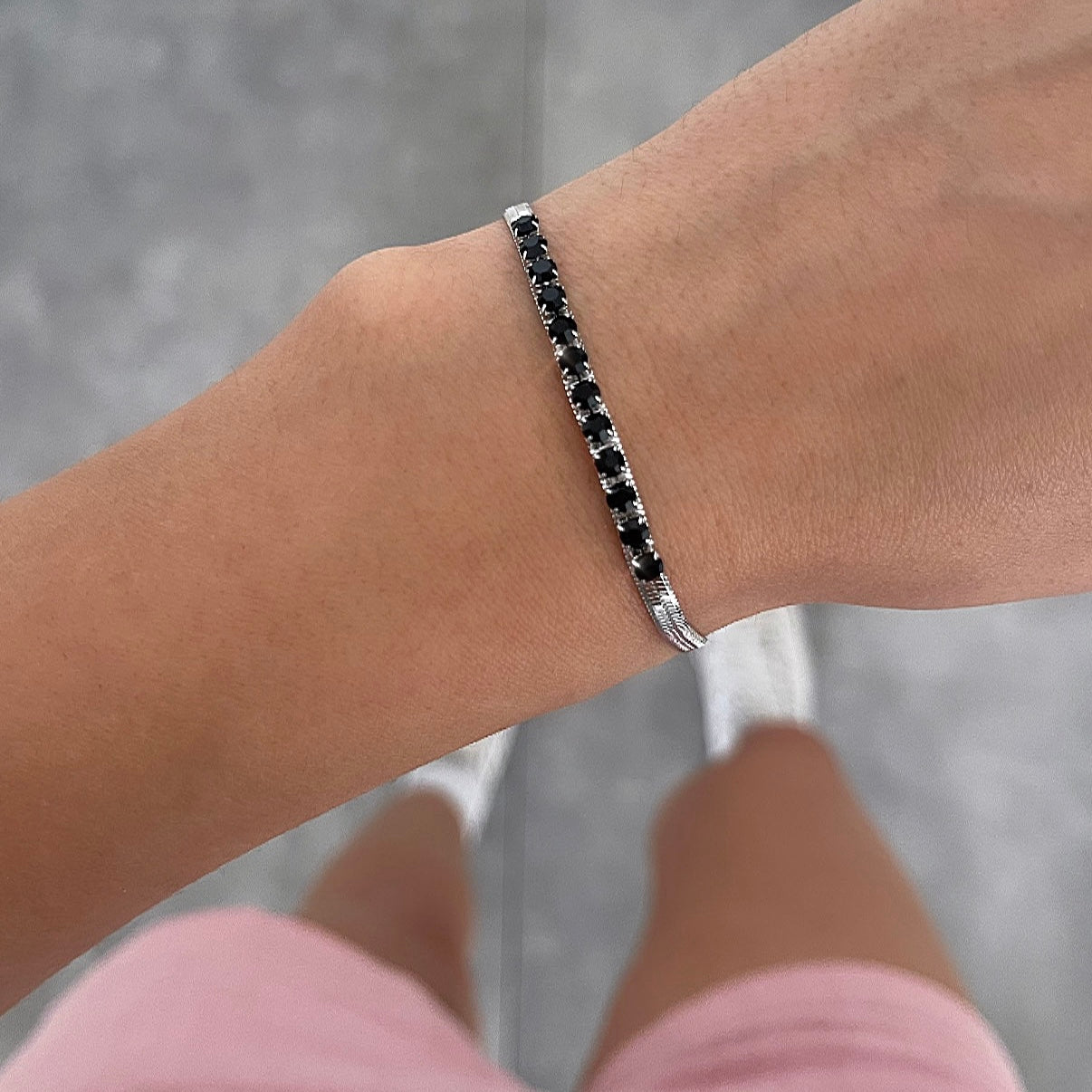צמיד אבנים שחורות על סנייק כסף