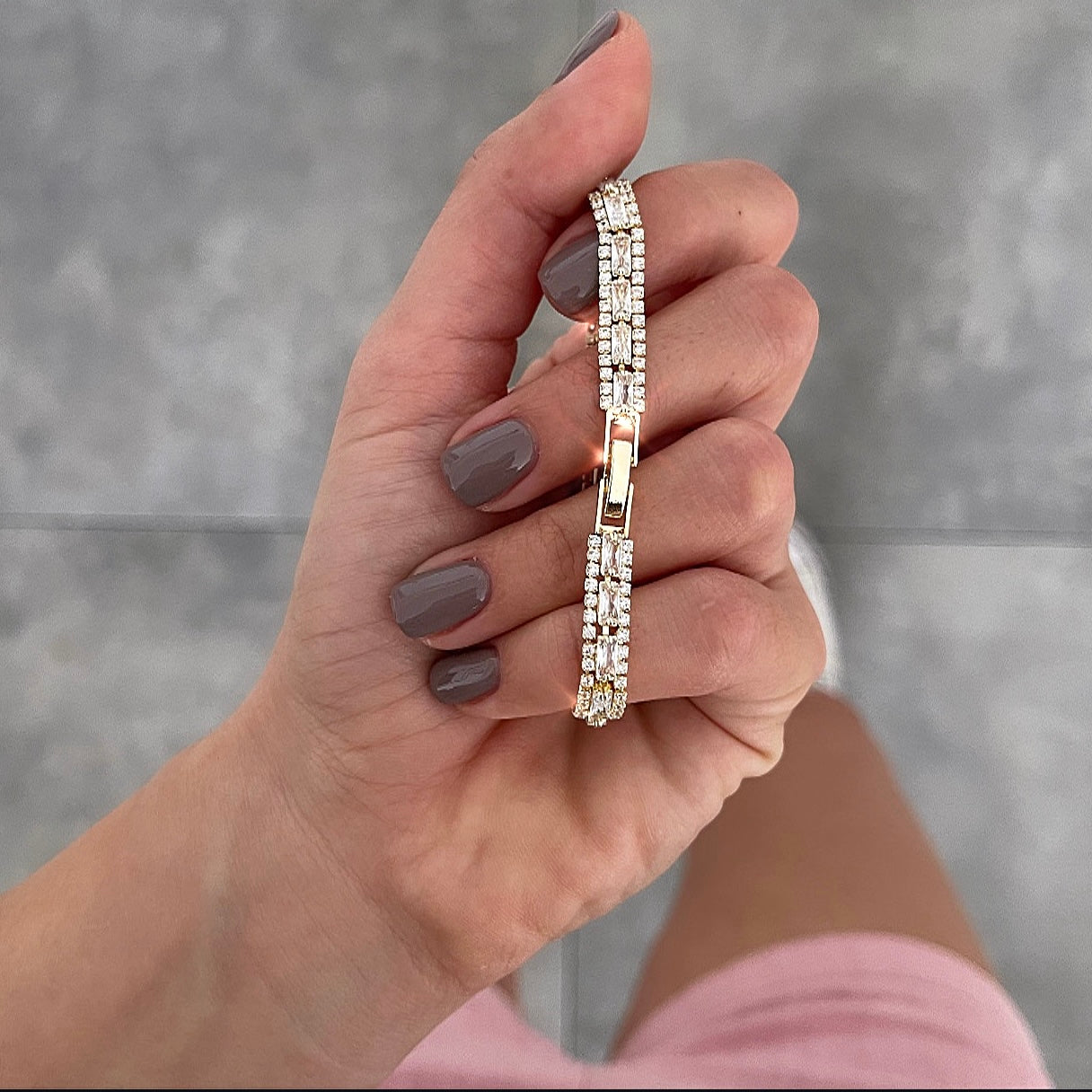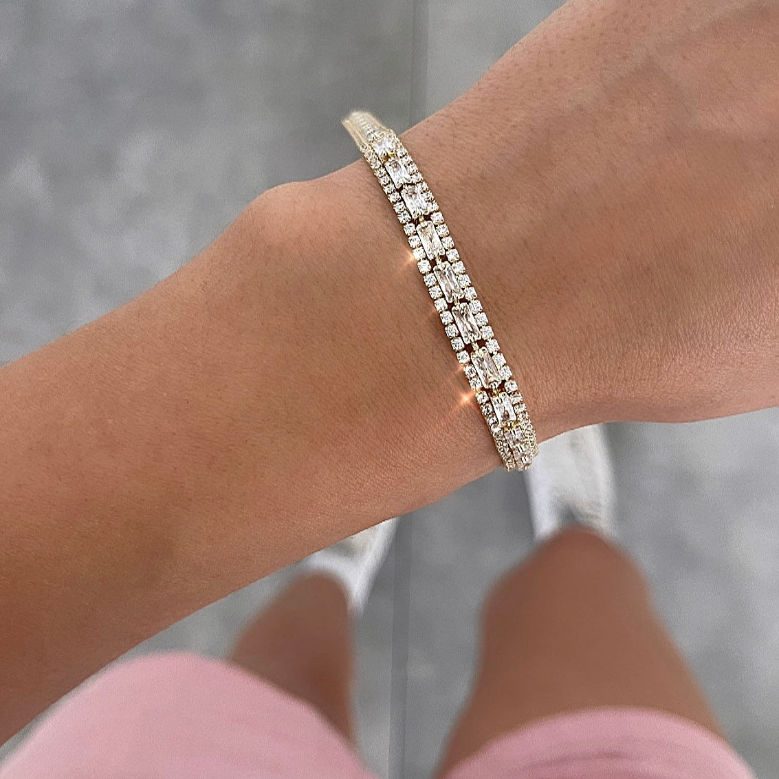 צמיד רכבת ריבועים שקופים זהב