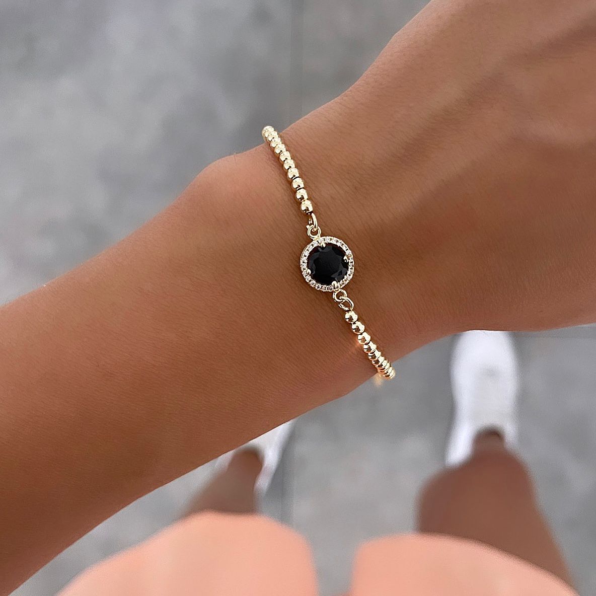 צמיד כדורים סוליטר שחור זהב
