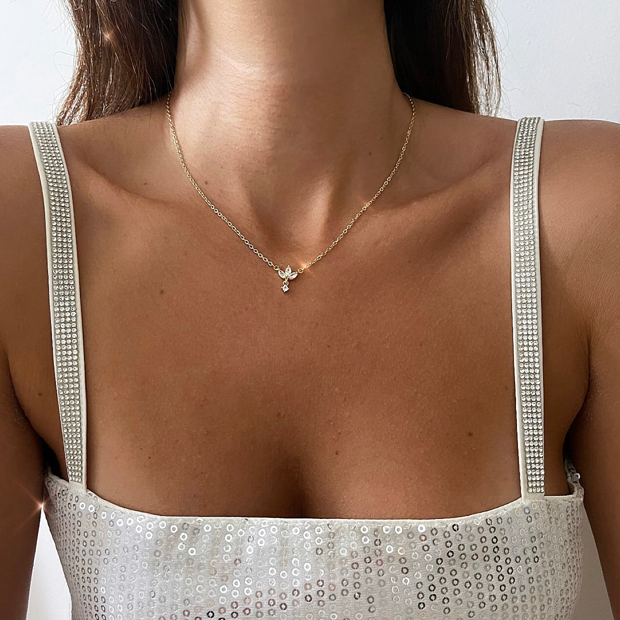 שרשרת חוליות לוטוס משובץ תלוי זהב