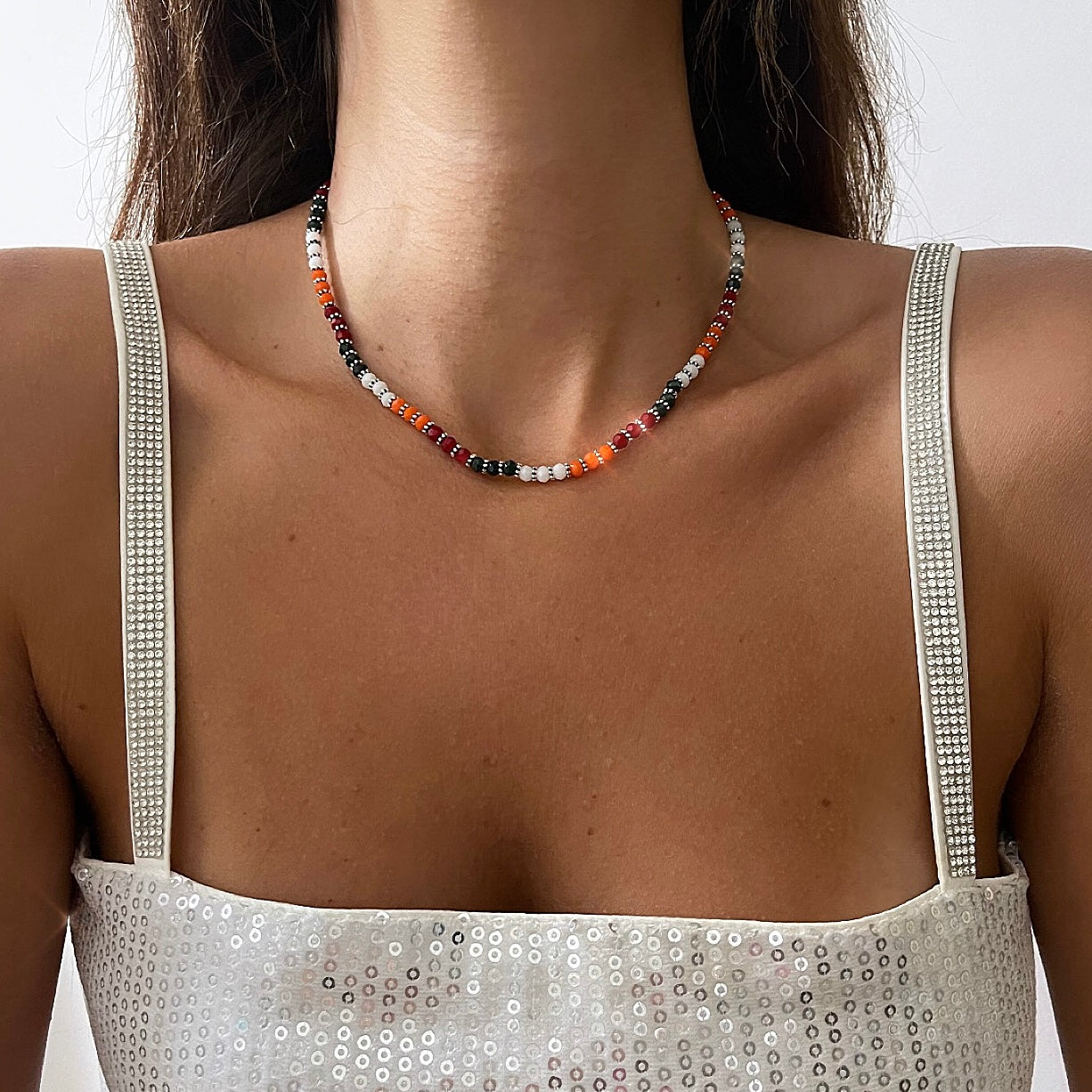 שרשרת רגלי סוס כתום/לבן/ שחור זהב
