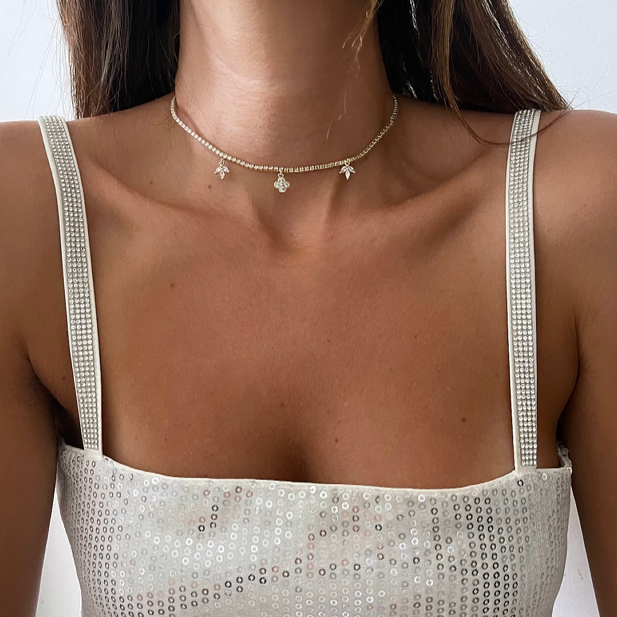 שרשרת שוקר טניס באמצע טולי משובץ בצדדים לוטוס משובץ זהב