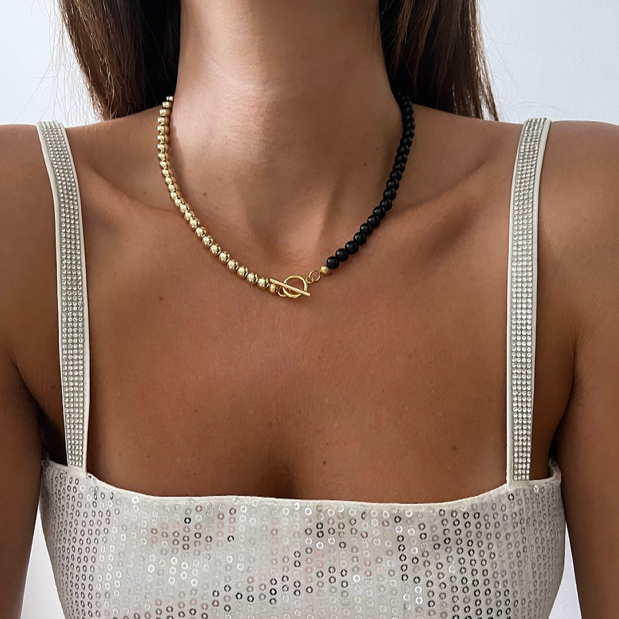 שרשרת חדש חצי כדורים שחורים חצי כדורים גדולים זהב