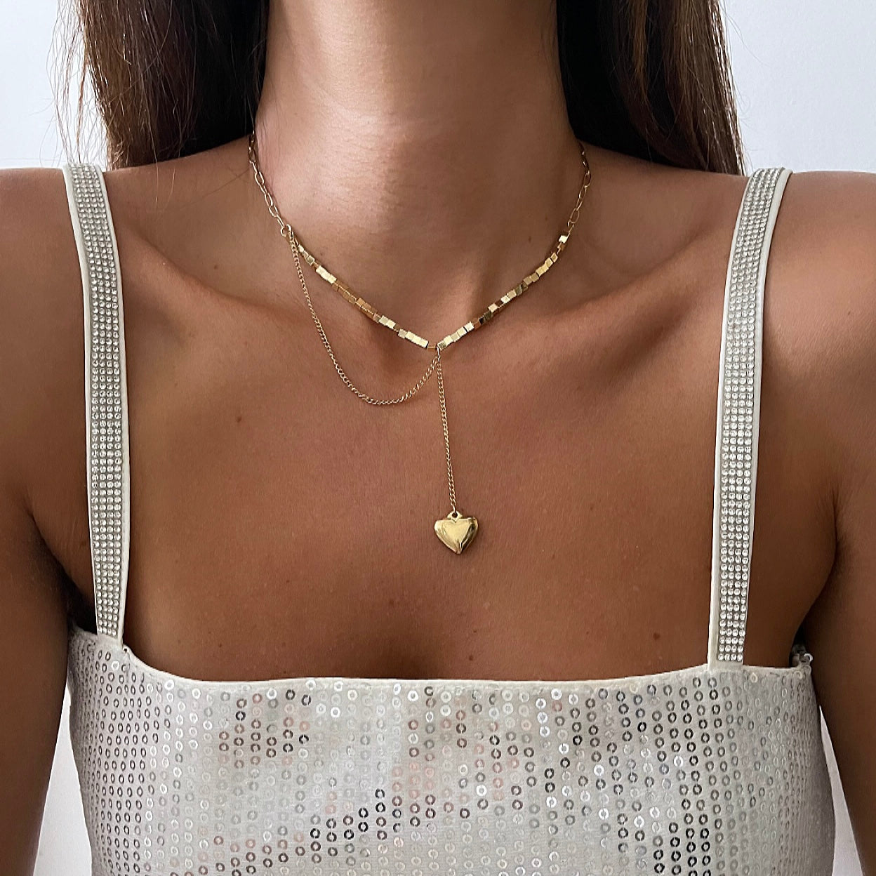שרשרת מהממת דו קוביות לב משתלשל כלפי מטה זהב r
