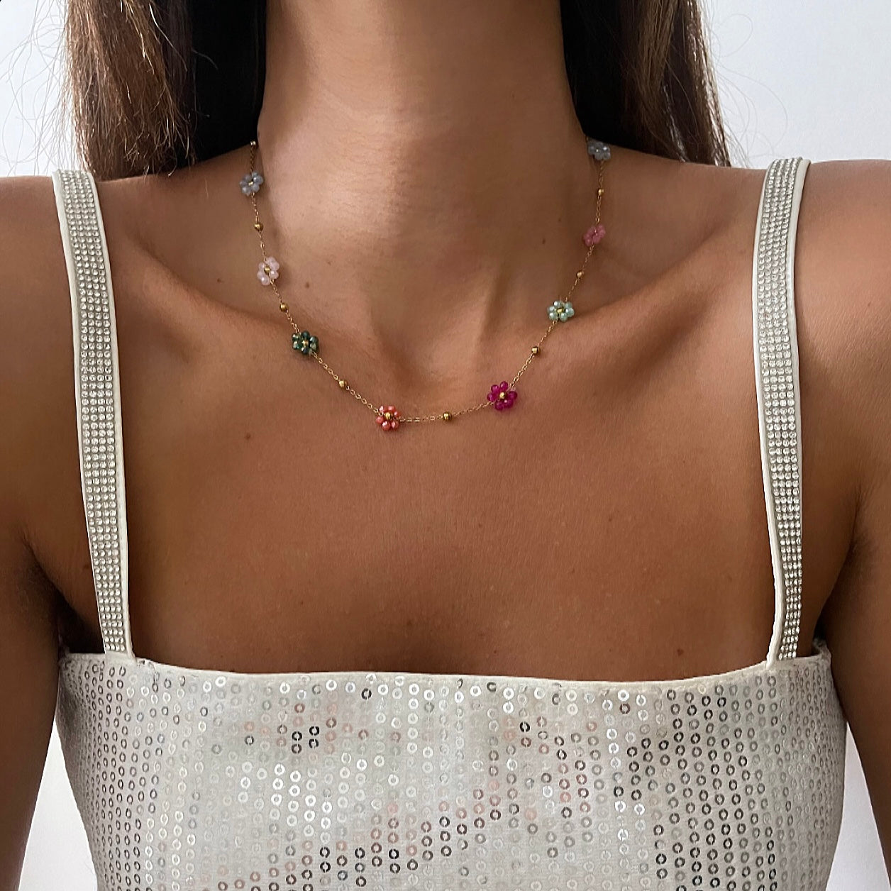 שרשרת סיי נקודות כדורים פרחים צבעוני זהב