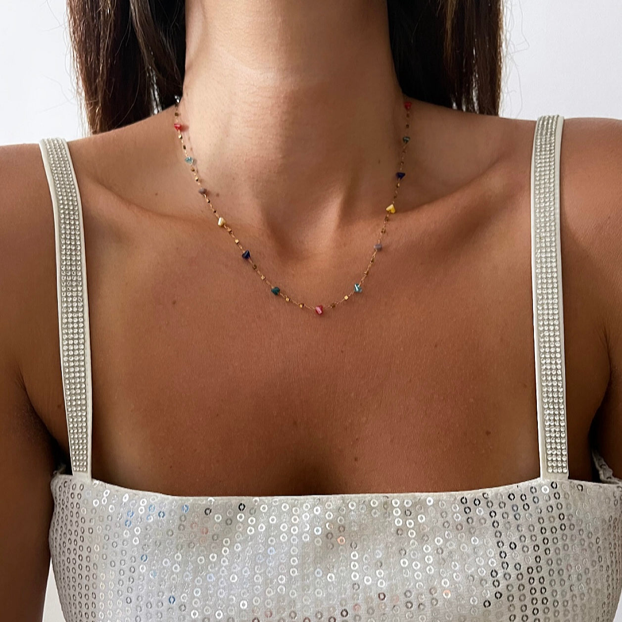 שרשרת אבנים בינוניות שבורות צבעוני רווח זהב