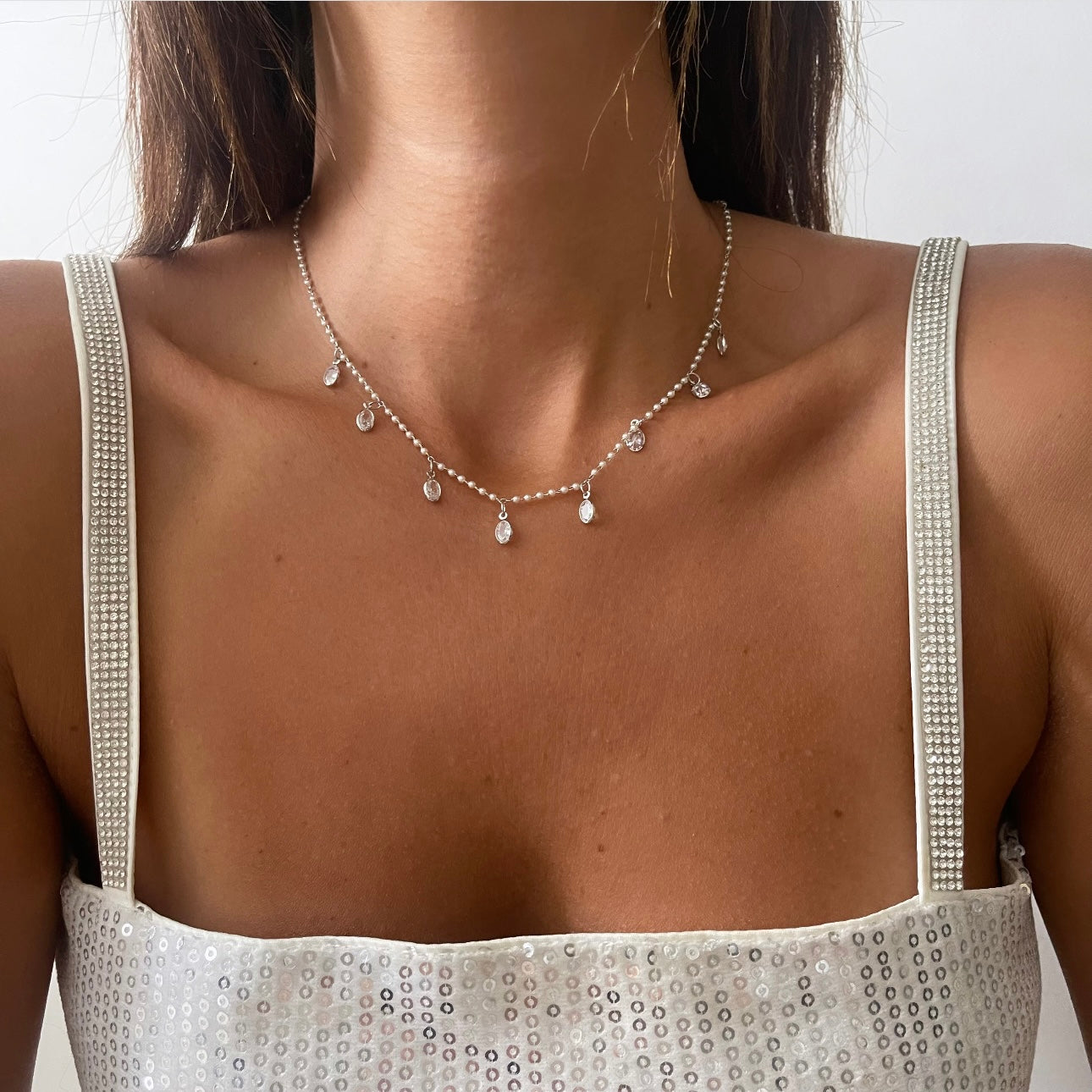 שרשרת שוקר 8 זירקונים טיפות כסף r