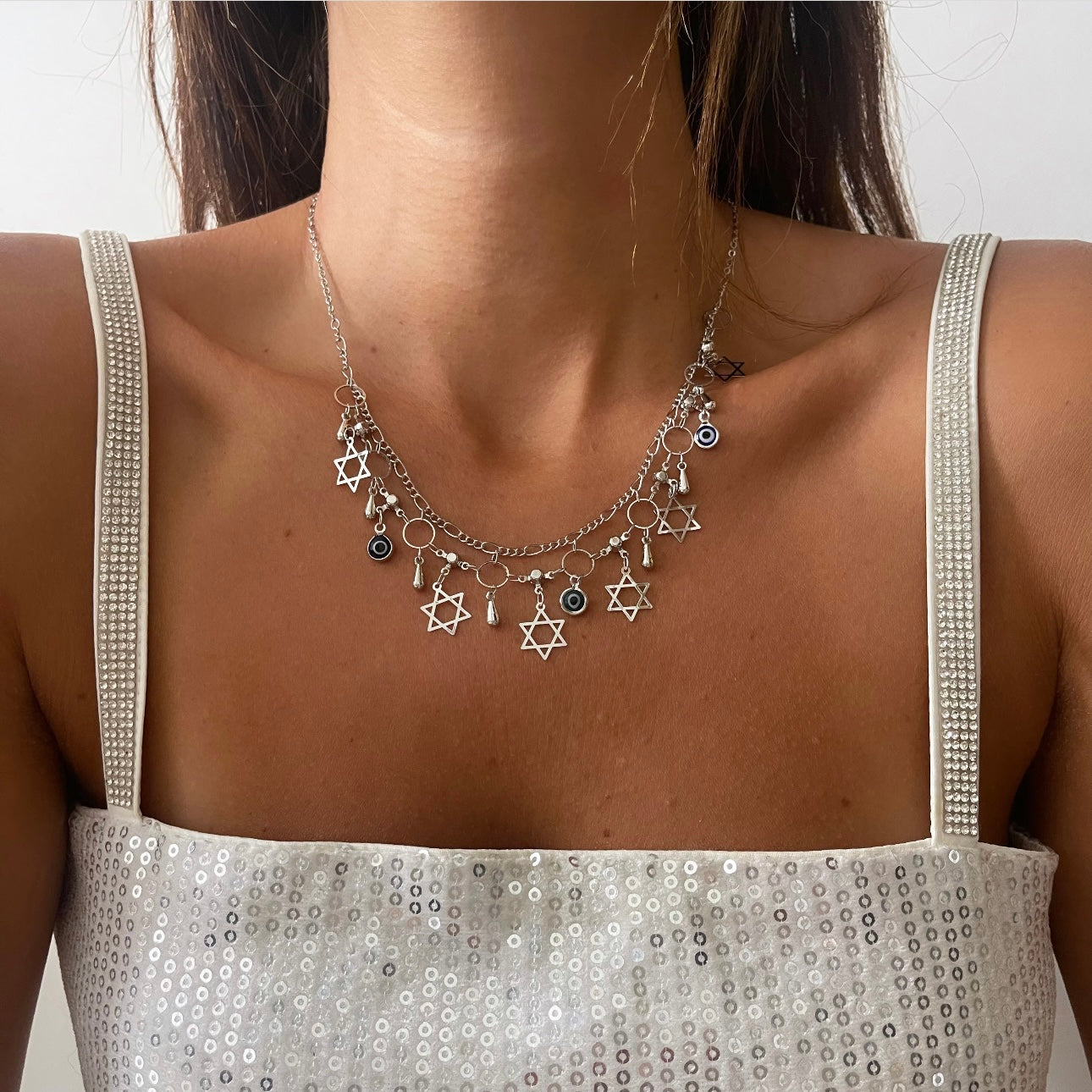 r שרשרת שוקר 6 מגן דוד עיניים כסף