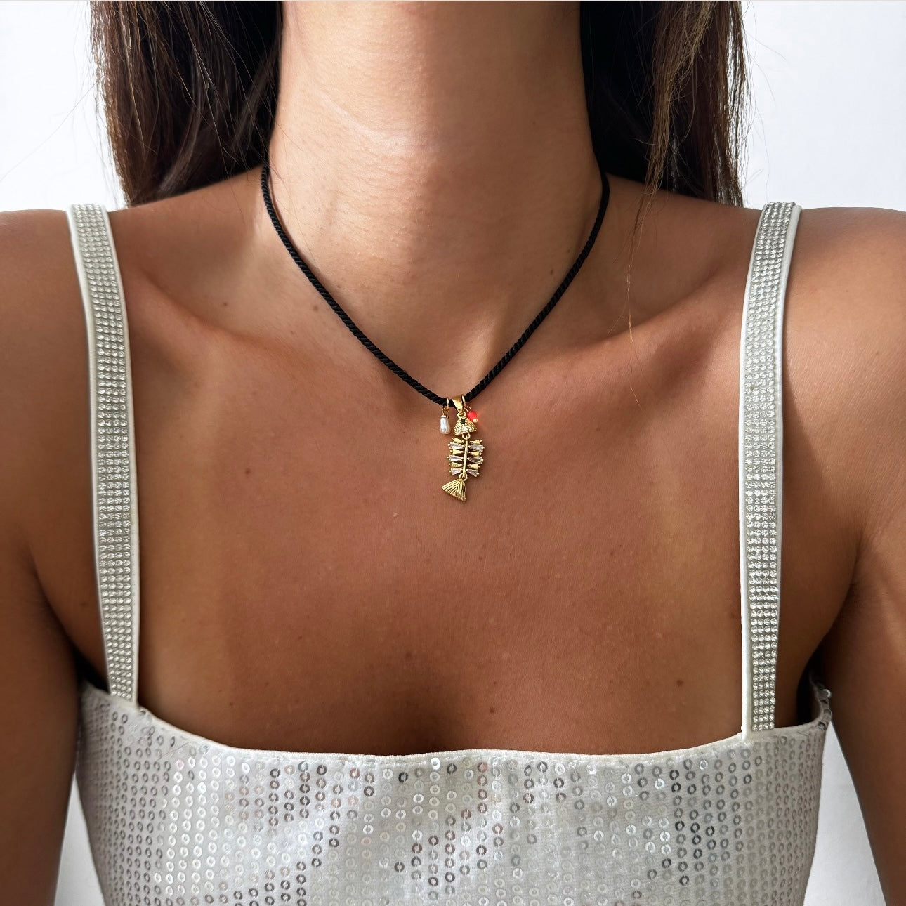 שרשרת חוט שחור דג מפורק אידרה זהב J
