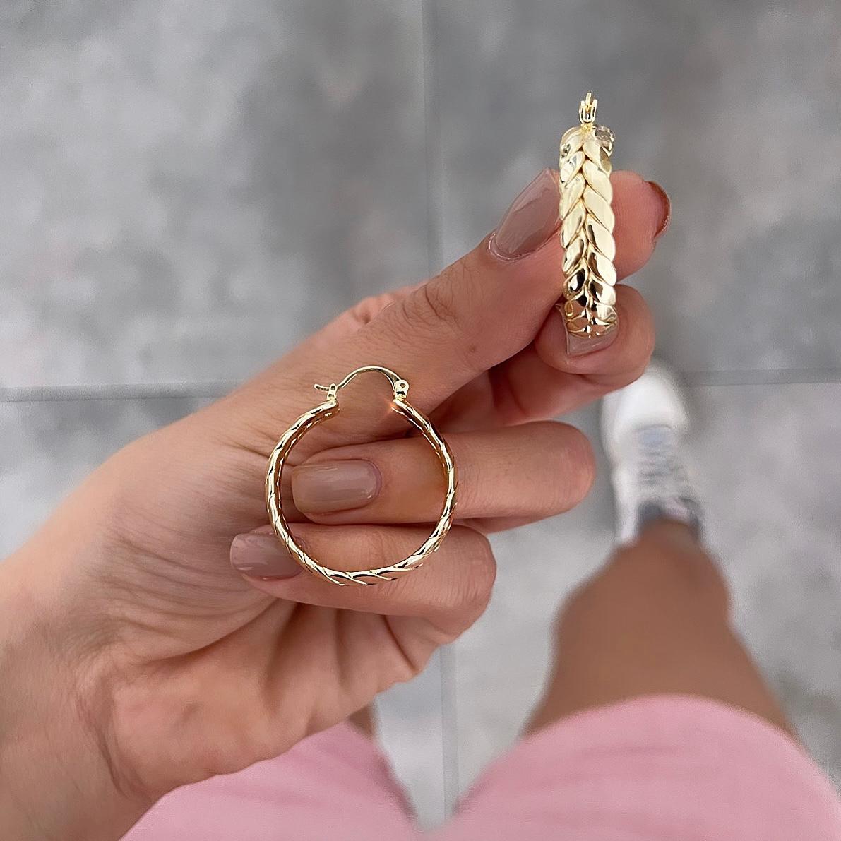 עגילים חישוק עלים זהב
