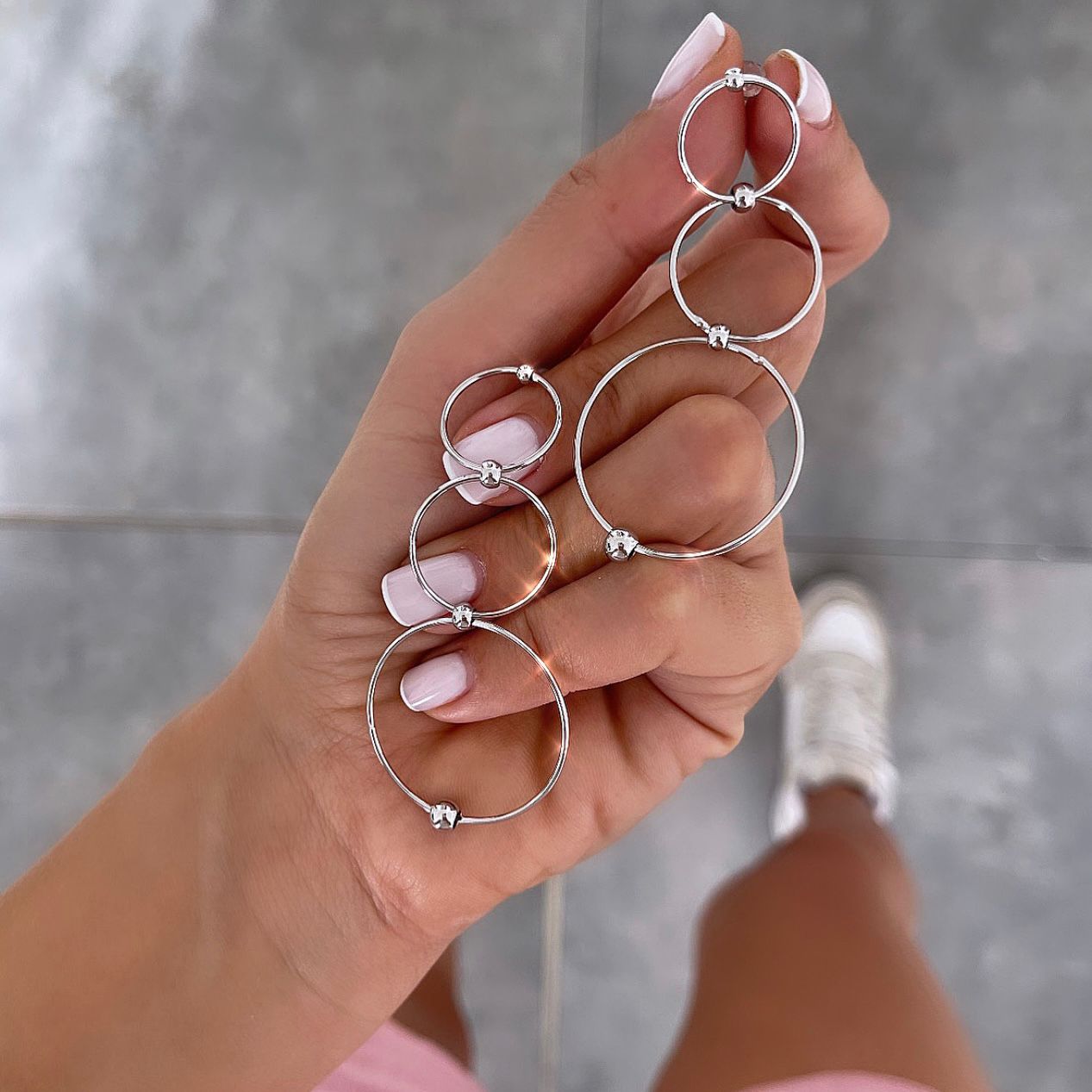 עגילים 3 חישוקים גדולים דקים לאורך כסף