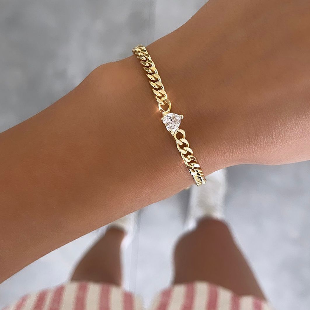 צמיד דין גורמט דק לב שקוף זהב