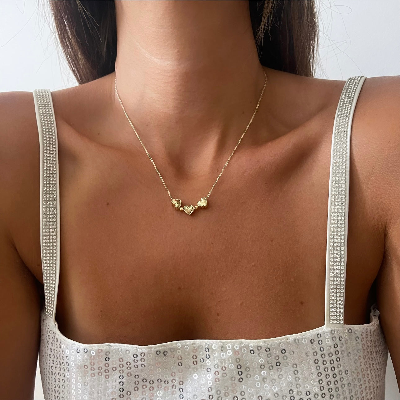 שרשרת 3 לבבות אלין קטנים בשורה חלקות זהב